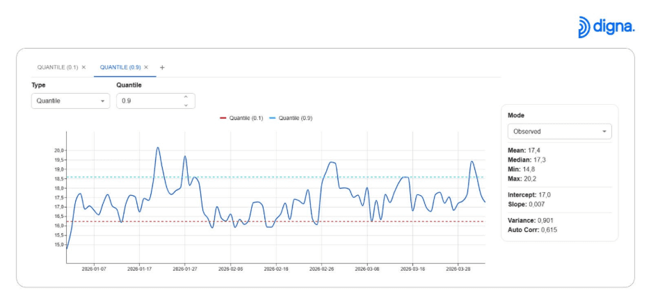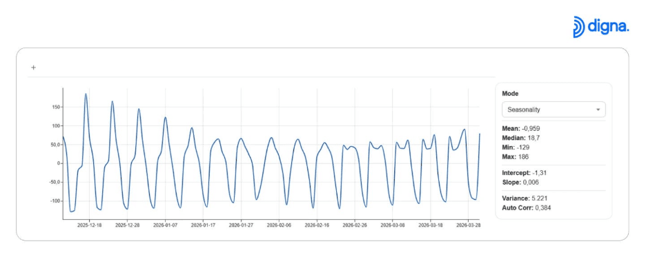 digna automatycznie wykrywa wzorce sezonowe i zachowania cykliczne.